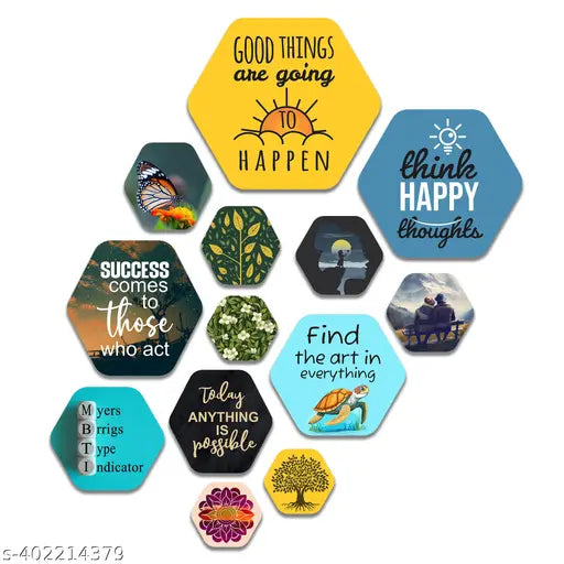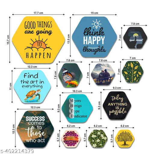 Name : Decorative Modern Wooden Wall Hanging Decoration for Home | Office | Living Room | Bedroom | Wall Accents | Stylish MDF Wood Wall Artwork Item | Quotes Decor Item (WPS_230N) Pack of 13 Pieces