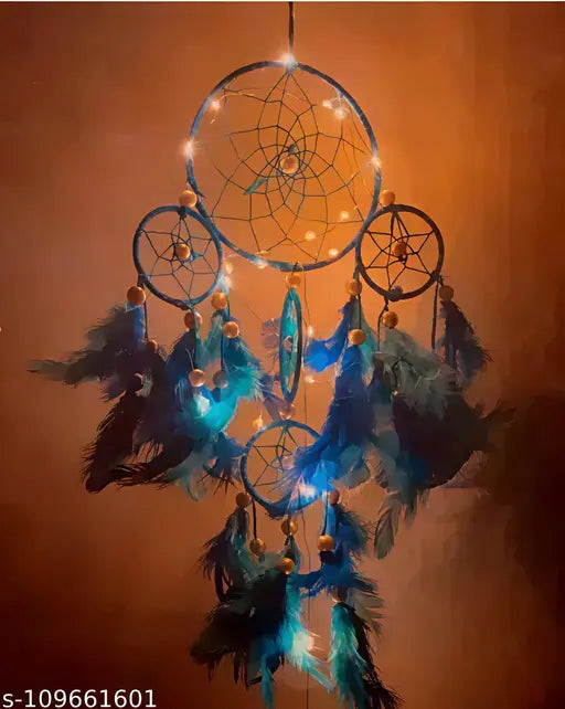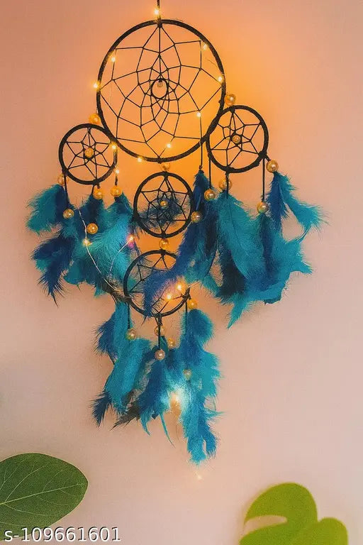 Name : Mehruna Dream Catchers Wall Hangings for Home Decor Bedroom Livingroom Balcony Car Dreamcatcher With Lightening for Positivity Feathers Wall Decoration Items for Kids Room; Yellow&Blue|20L X 65H cm Dream Catcher