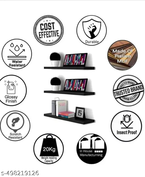 Floating Design : With a sleek, floating design, these shelves create an illusion of lightness, making your walls appear more spacious
